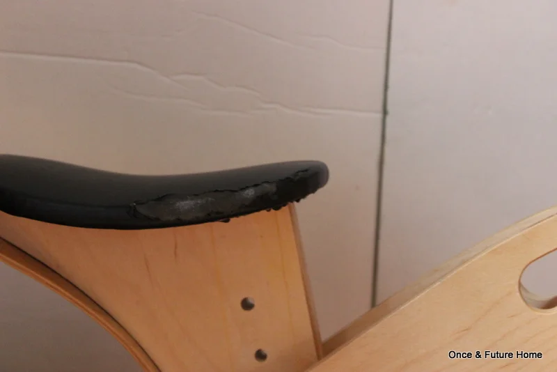 Either way, it was the deal of the day, and Lou loves it. I love it. The whole neighborhood loves it. We stop and chat with everyone we see (and Lou often has to assure people that she can ride a bike with pedals, as a point of pride). But, as I say, the basket was a serious omission. And while I was at it, I figured I should fix the seat, which has been peeling back a bit.