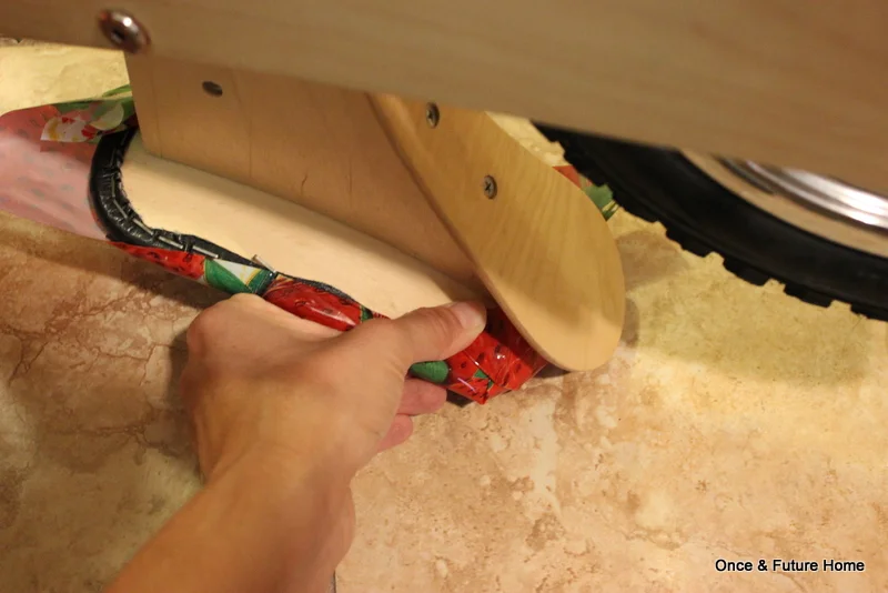 From here, it was all pretty straightforward. I cut the top off the basket, used thin gauge wire to attach it to the bike, and used a combo staple gun and hot glue gun to reupholster the seat.