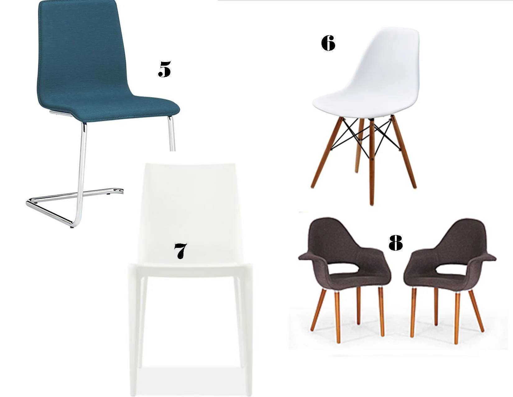 7. Also white, but with a different vibe is the Bellini Chair from Room and Board. You can find similar silhouettes from a number of different outlets, and they have appeal because they're simple, easy to keep clean, and can update pretty much any dining table you've got. Okay, not any dining table. But they are versatile. These run $175 each.