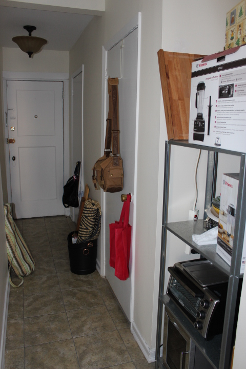 You're forgiven if you don't at first see the progress here, but trust me, it's there. We've cleared out all the boxes and made the entry way a bit functional by using one of the two closets here as a coat closet of sorts. That closet is also being used for storage, so both for space reasons and to streamline the exit/entry process, we're going to keep some stuff out in the open. What you see in the progress shot is a foreshadow of what's to come. That's our stroller (the super compact Maclaran Mark II that I'm happy to wax poetic about if anyone wants), my yoga mat (admittedly more for show these days) and an umbrella sitting there against that little wall sliver. I should be known for my outsized plans by now, so here're my plans for that little sliver of wall: