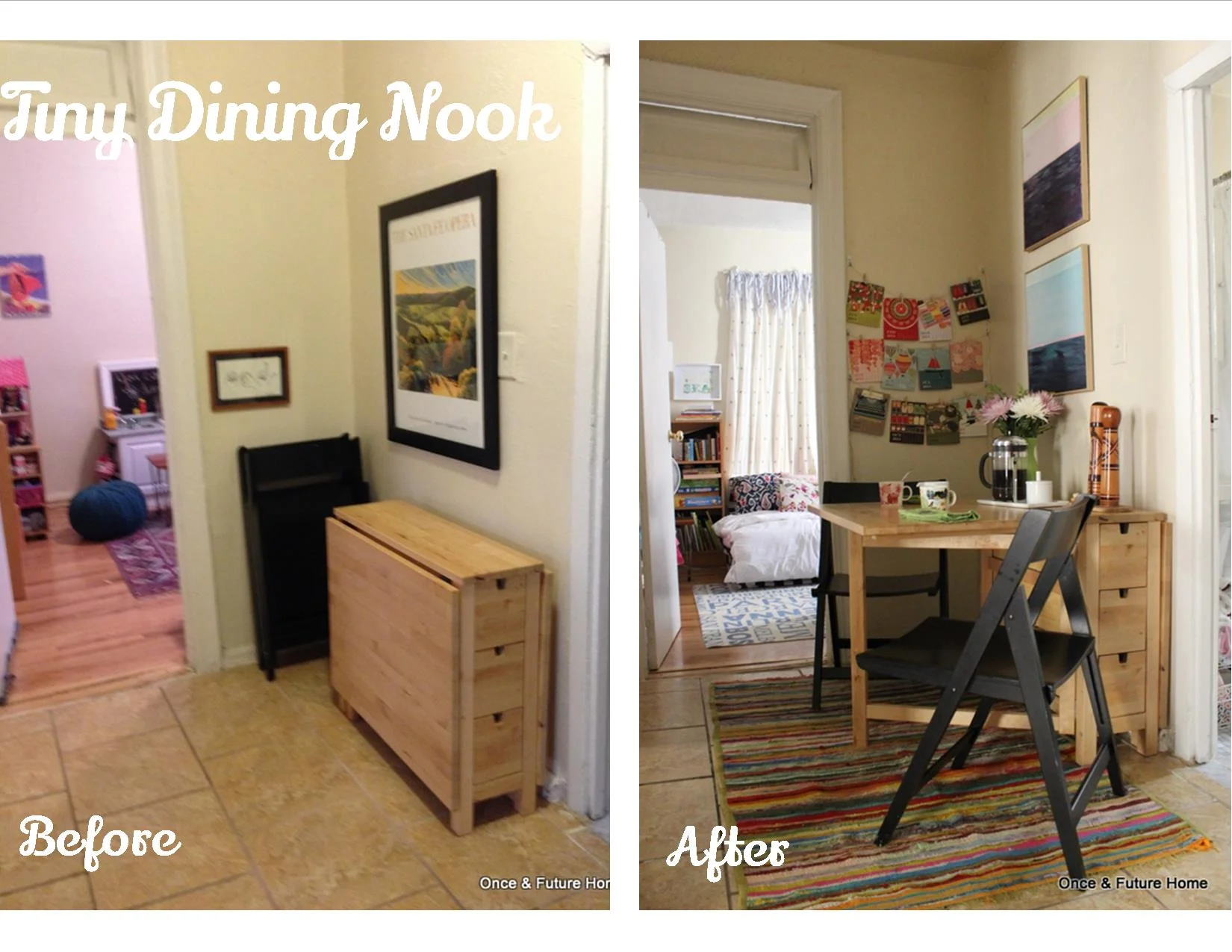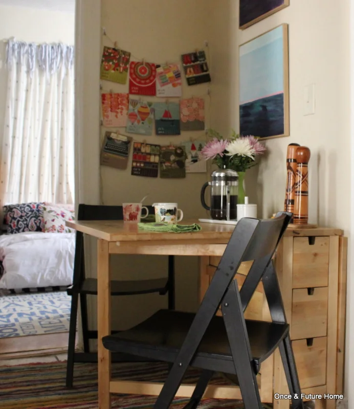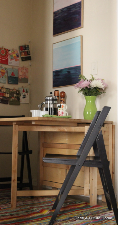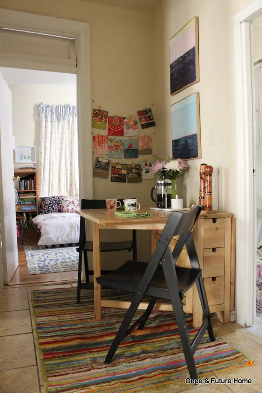 All of which is to say: $19 took this space from a pass through to a real dining area, and we're very happy with the change. Are you shoehorning function into a space that wasn't meant for it? Do share and thanks for stopping by!